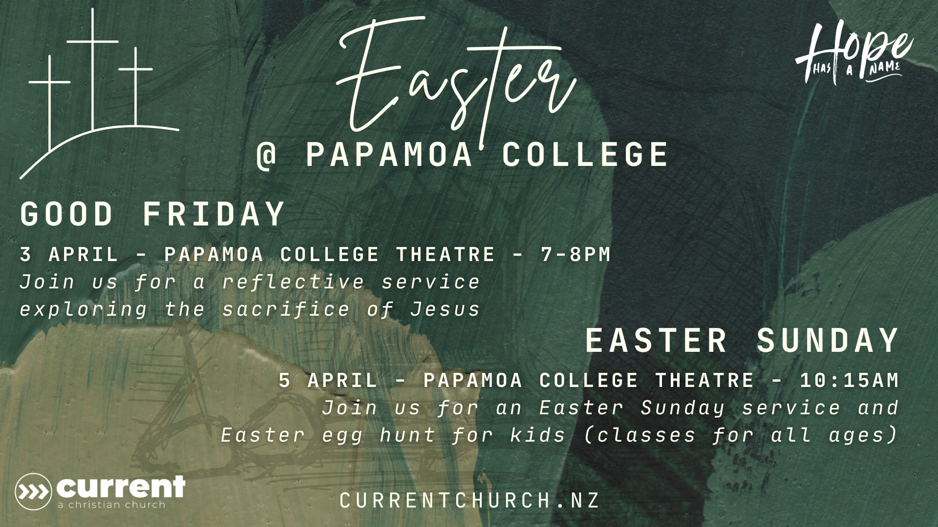 We meet every Sunday at Papamoa College for our service. We hope you’ll join us!